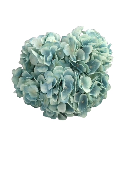 Flores artificiais de hortência confeccionadas em tecido de seda, com suporte de metal e acabamento em plástico, garantindo durabilidade e beleza.