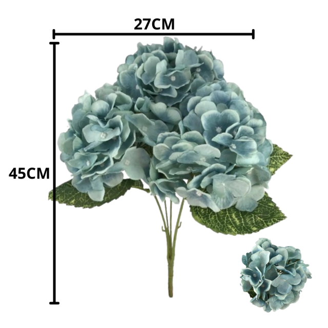 Transforme seu espaço com o sofisticado buquê de hortência artificial. Com cinco flores exuberantes, este buquê é ideal para arranjos e decorações elegantes.